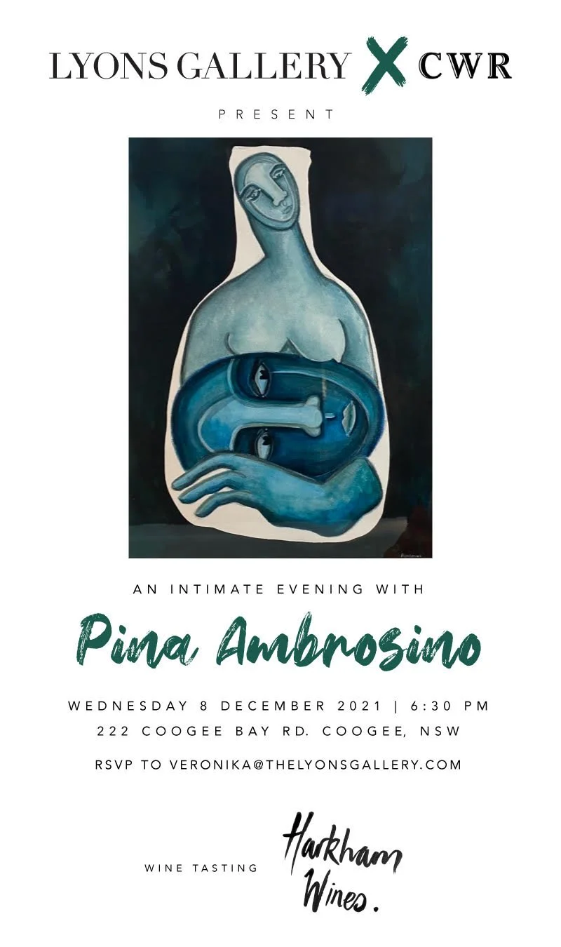 We are thrilled to announce An Intimate Evening with Pina Ambrosino and her pop-up gallery at Coogee Wine Room.